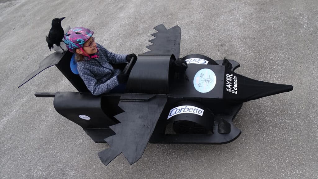 Ayer pour demain et le Team fins caisses présentent leur Corbette, bolide 100% écolo conduit par Eve lors de la course de caisses à savon. Nous avo