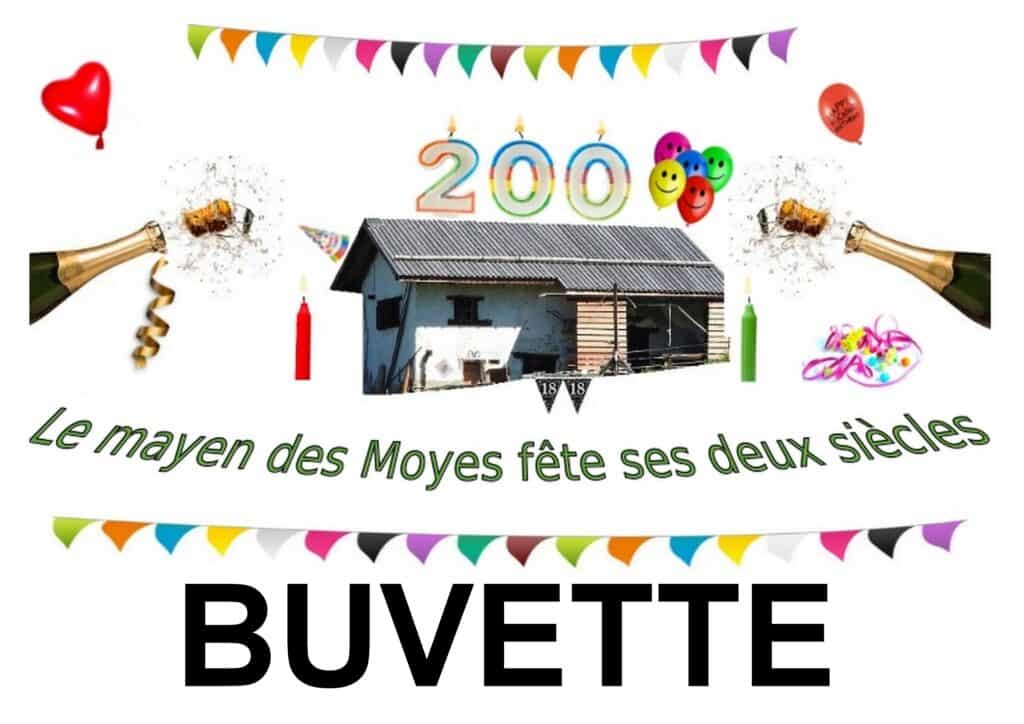 Le mayen des Moyes devient buvette tous les week-ends du 30 juin au 26 août pour fêter les 200 ans de la bâtisse. lien vers l’affiche Moyes 1818