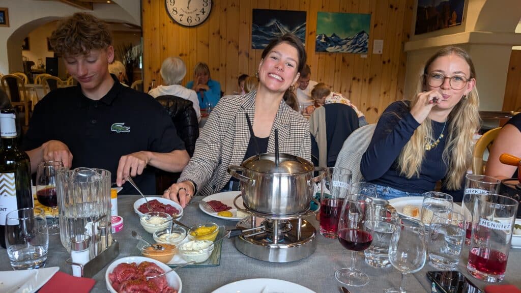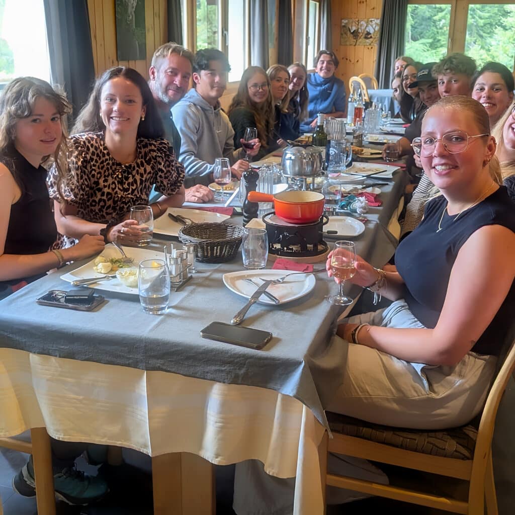 Le camp des Moyes 2025 n’était pas tout à fait terminé, il manquait le repas des moniteurs. Chose faite ce samedi au restaurant de l’Europe à Zinal, le sponsor de notre repas du mercredi soir. Il manquait quelques stars, on racontait dans les tables que de grands patriotes avaient trop fêté notre pays la veille, et qu’ils avaient peur d’entrer dans l’Europe. Merci à toute l’équipe des monos pour cette belle édition !